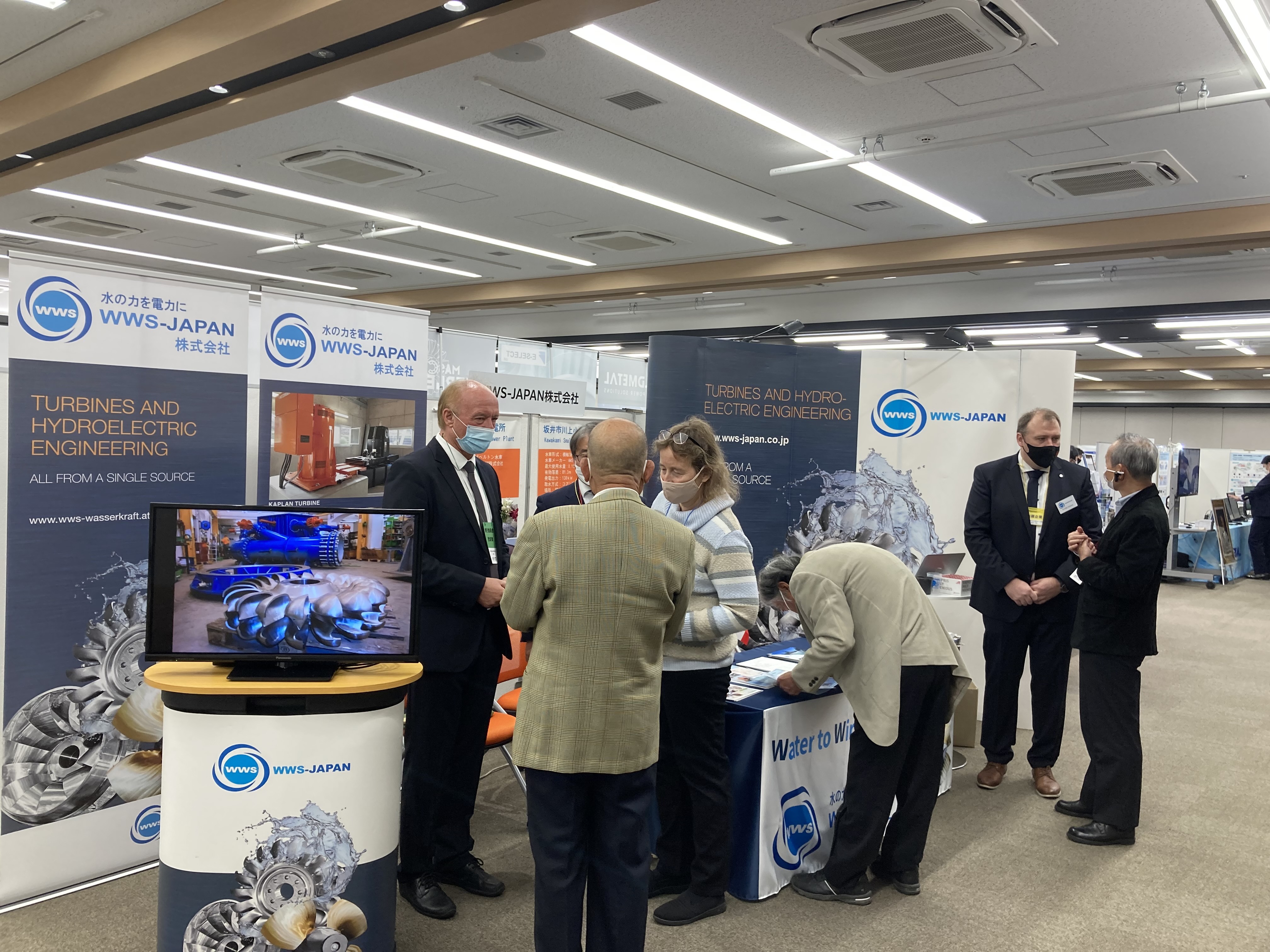 オーストリア本社WWS Wasserkraft Gmbhから代表取締役クリストフ・ワーグナー氏やギュンター・シャラー氏が来日し、オーストリアにおける水力発電に対するアプローチや機器性能・品質などについてブースで説明いたしました。